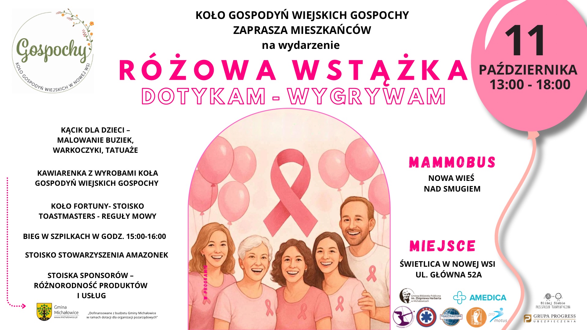 W imieniu Koła Gospodyń Wiejskich Gospochy serdecznie zapraszamy mieszkańców na wyjątkowe wydarzenie poświęcone profilaktyce raka piersi i wspólnemu spędzaniu czasu!