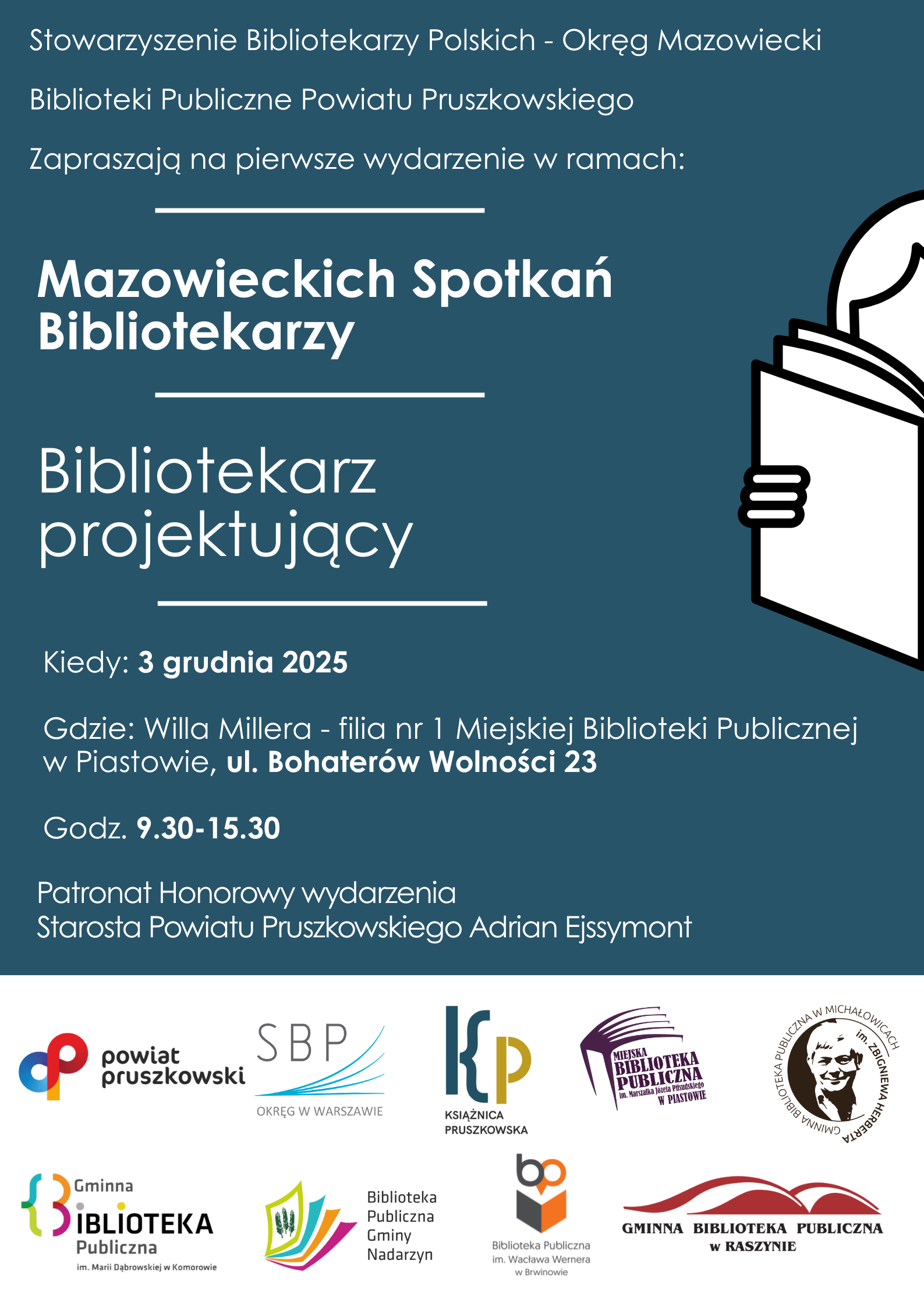 Jako współorganizatorzy I Mazowieckiego Spotkania Bibliotekarzy – Bibliotekarz projektujący zachęcamy koleżanki i kolegów z bibliotek do wzięcia udziału w tym wydarzeniu.