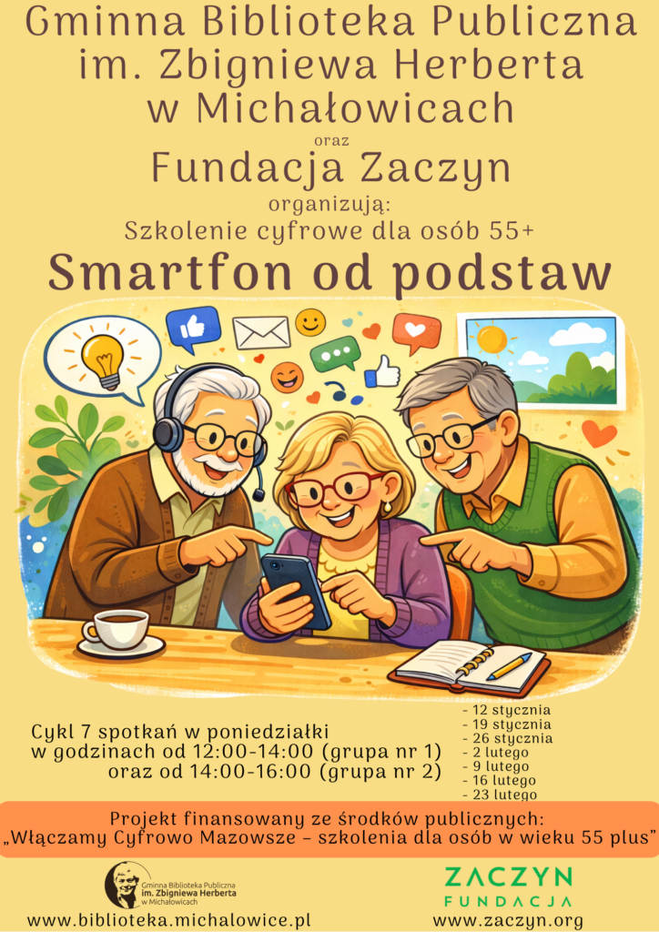 We współpracy z Fundacją Zaczyn organizujemy Szkolenie cyfrowe dla Członków Związku Emerytów, Rencistów i Inwalidów z Koła nr 11 pt. „Smartfon od podstaw”.