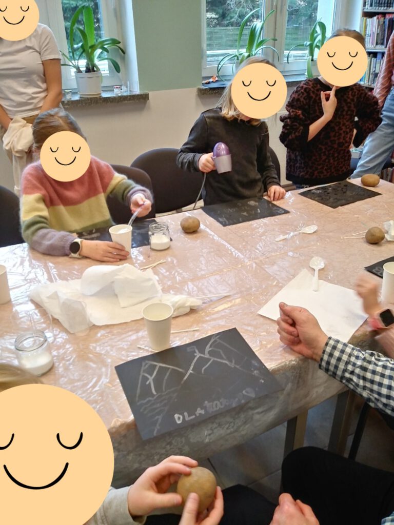 Na zakończenie zajęć gotowe podkładki zostały utrwalone, a każde dziecko mogło zabrać swoją pracę do domu. Warsztaty dostarczyły uczestnikom wiele satysfakcji i radości, a wykonane podkładki stały się nie tylko praktycznym przedmiotem, ale także pamiątką z miło spędzonego czasu.