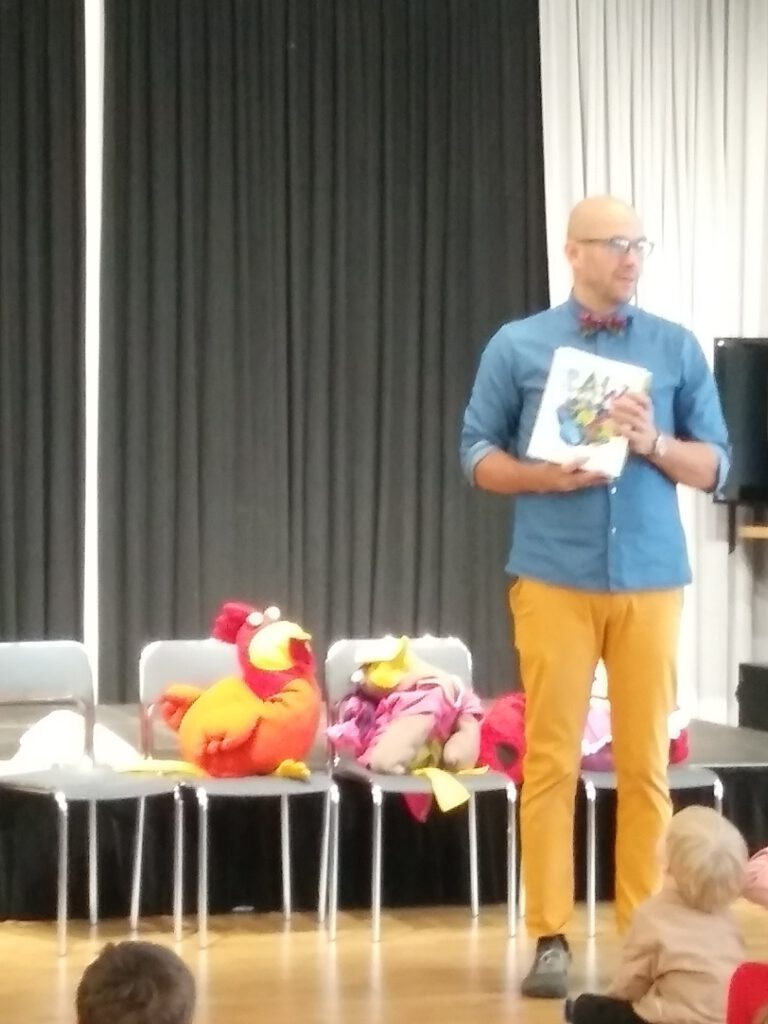 Już od pierwszych chwil Pan Poeta nawiązał świetny kontakt z dziećmi, witając je w humorystyczny i pełen energii sposób. Zamiast tradycyjnego, spokojnego czytania, zaprosił najmłodszych do wspólnej, interaktywnej przygody. Czytając fragmenty swoich książek, zadawał pytania, prosił o pomoc w dokańczaniu rymów i zachęcał do wspólnego naśladowania bohaterów. Dzieci aktywnie uczestniczyły w spotkaniu, reagowały śmiechem, odpowiadały na pytania i chętnie dzieliły się swoimi pomysłami.