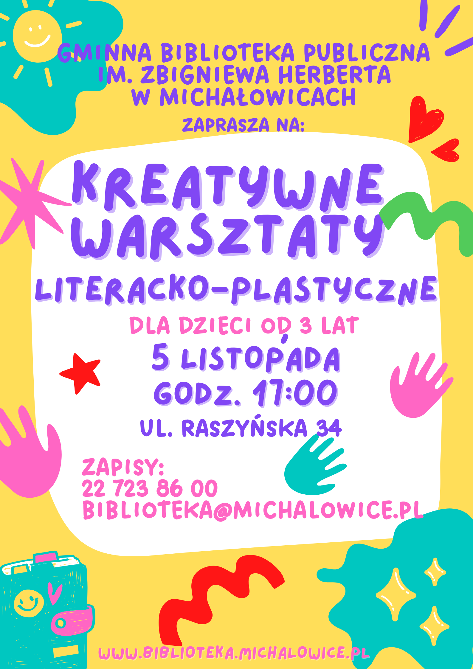 Zapraszamy najmłodszych Czytelników (od 3 roku życia) na Kreatywne Warsztaty literacko-plastyczne – 5 listopada o godz. 17:00.